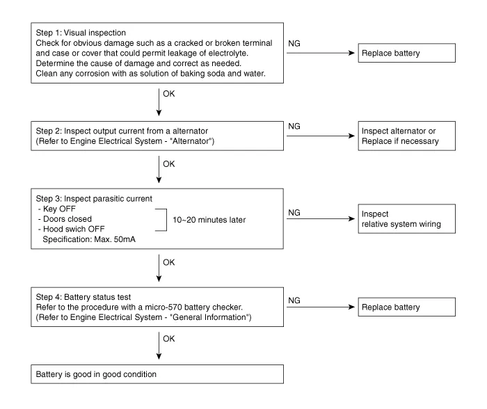 Removal 1. Disconnect the battery sensor connector (A), battery negative terminal (B) and positive terminal (C). 2. Disconnect the vent hose connector (A) from the battery air vent hole.