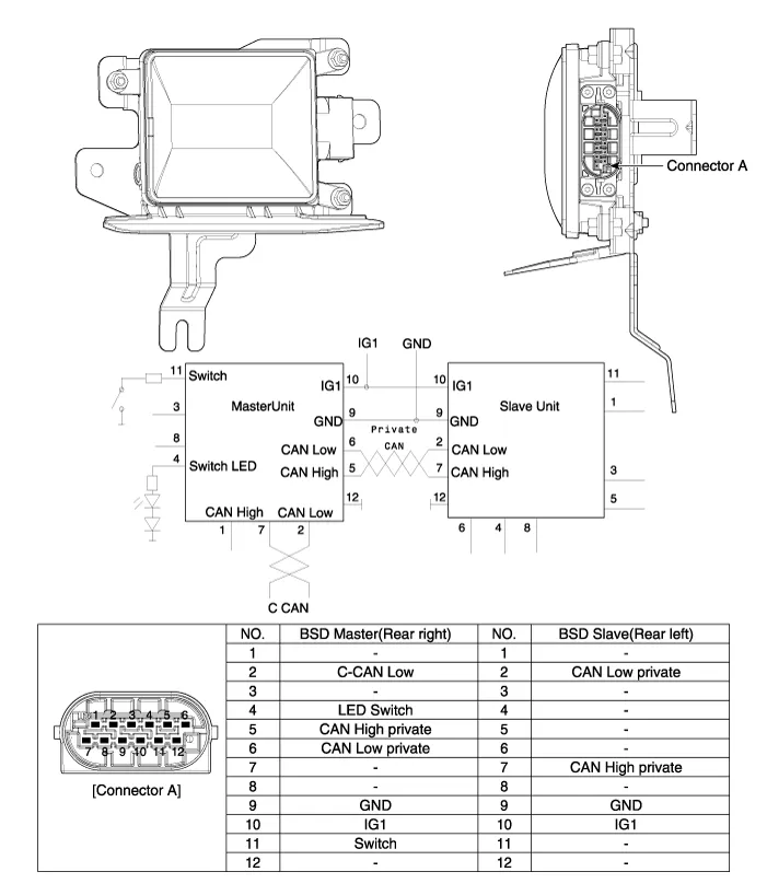 Removal 1. Disconnect the negative (-) battery terminal. 2. Remove the rear bumper. (Refer to Body - "Rear Bumper") 3. Remove the BSD unit (A) after loosening the mounting nuts.