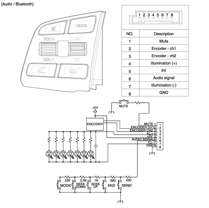 Components 1. Hands free call switch2. Overhead console (Mic)3. Front left speaker4. Front right speaker5. Audio head unit (hands free control) ? There is no hands free jack.