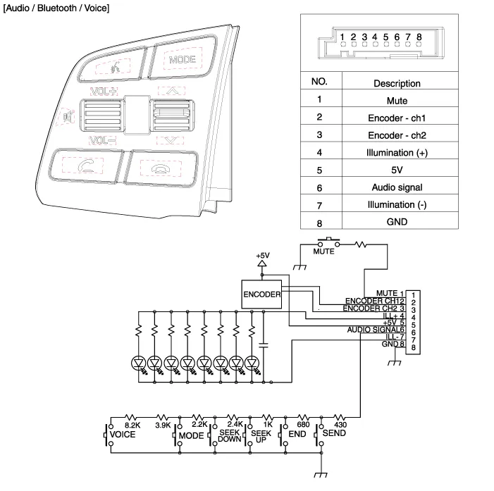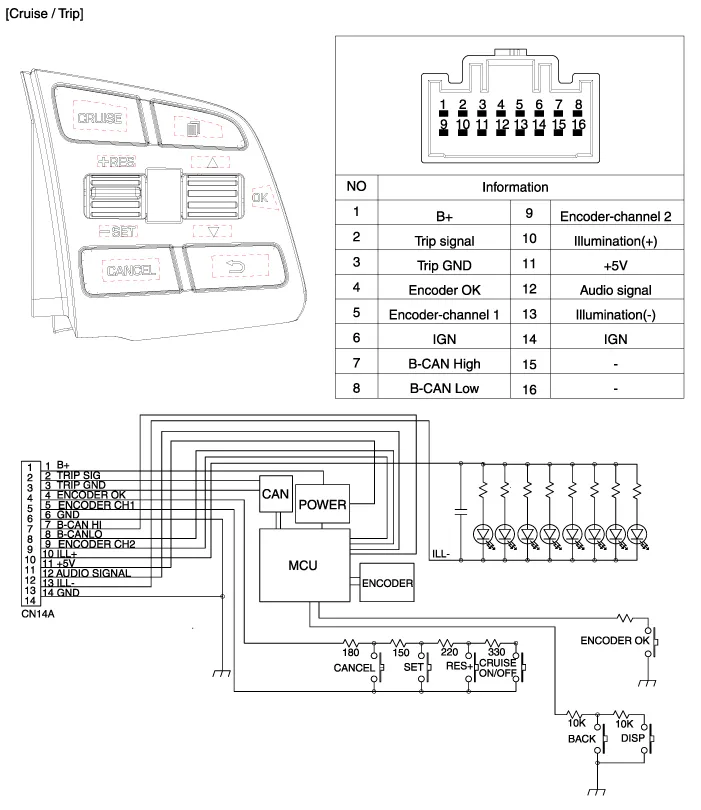 Description The steering wheel remote controller (SWR) is composed of four switches and the right top switch is equipped with the Body CAN communication module.