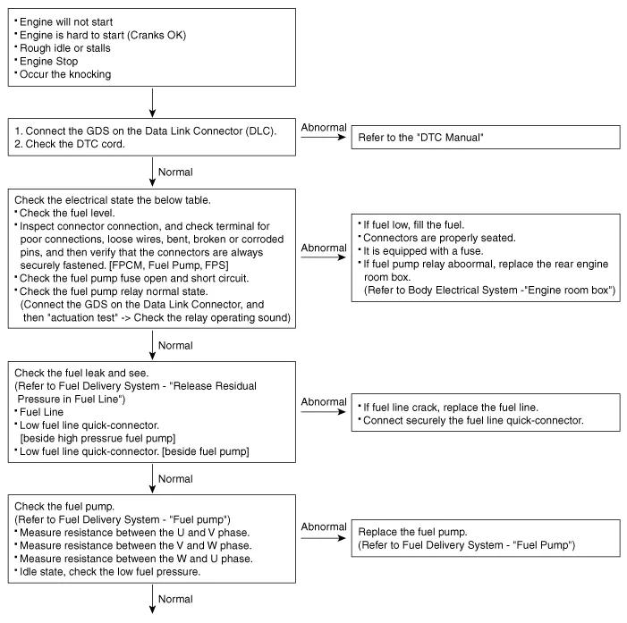 Components Location 1. Fuel tank2. Fuel pump3. Sub fuel sender4. Fuel filter5. Over Pressure Valve (OPV)6. Canister7. Fuel tank air filter8. Fuel Pressure Test 1. Release the residual pressure in fuel line. (Refer to Fuel Delivery System - "Release Residual Pressure in Fuel Line") When removing the fuel pump relay, a Diagnostic Trouble Code (DTC) may turn up. Other information:Hyundai Genesis (DH) 2013-2016 Service Manual: Description and OperationDescription BSD is a system that measures the speed of and distance from the following vehicles by using two magnetic wave radar sensors attached to the rear bumper, and detects any vehicle within the blind spot zone and gives off alarm (visual and auditory). Hyundai Genesis (DH) 2013-2016 Service Manual: Auto Defogging Actuator Repair proceduresInspection 1. Turn the ignition switch OFF. 2. Disconnect the auto defogging connector. 3. Verify that the auto defogging actuator operates to the open position when connecting 12V to terminal 3 and grounding terminal 4. Verify that the auto defogging actuator operates to the close position when connected in reverse. Categories