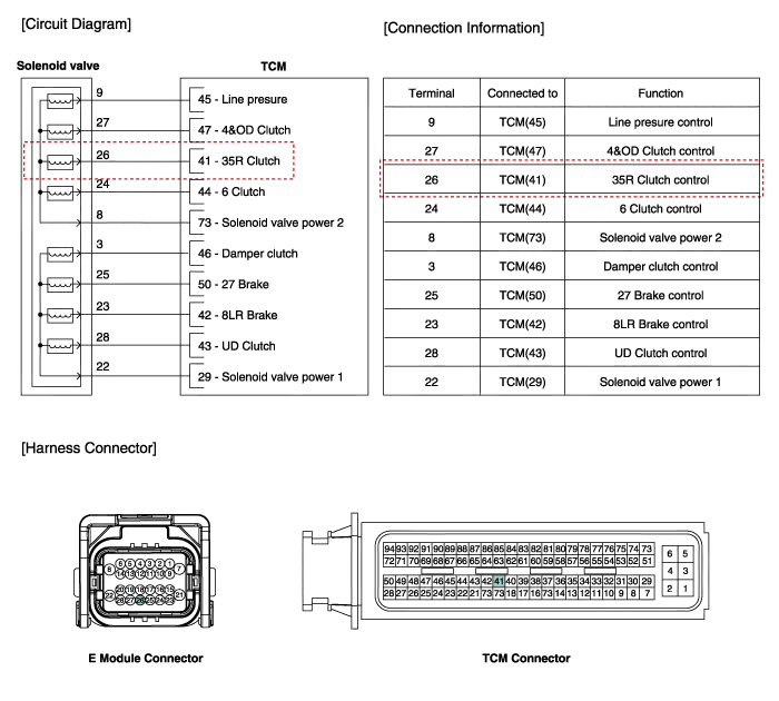 Inspection 1. Turn ignition switch OFF. 2. Disconnect the E Module connector. 3. Measure resistance between solenoid valve terminals. 4.
