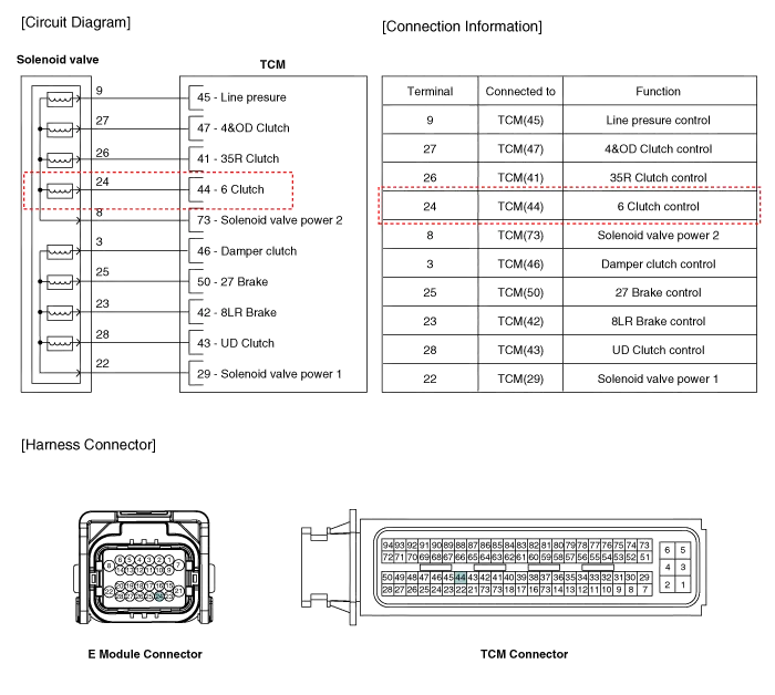 Inspection 1. Turn ignition switch OFF. 2. Disconnect the E Module connector. 3. Measure resistance between solenoid valve terminals. 4.