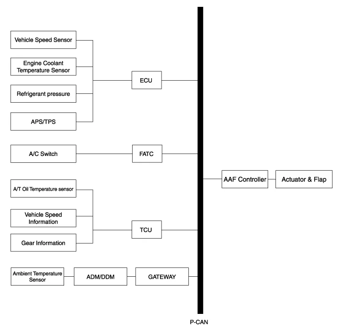 Components 1. Active air housing2. Active air flap3. Active air link4. Active air actuator5. Active air duct6. Active air actuator cover