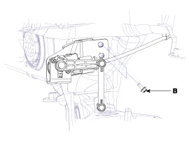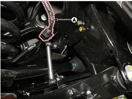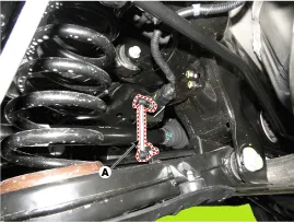 Remove the head lamp leveling unit linkage (A) installed on the rear left axle.