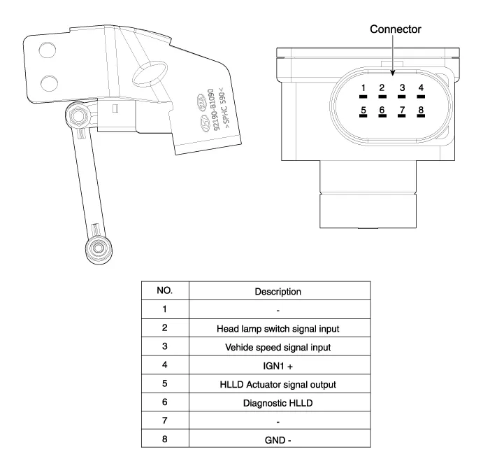 Component Location 1. Head lamp leveling actuator (Built - in Head lamp)2. Head lamp leveling unit (Rear left only)