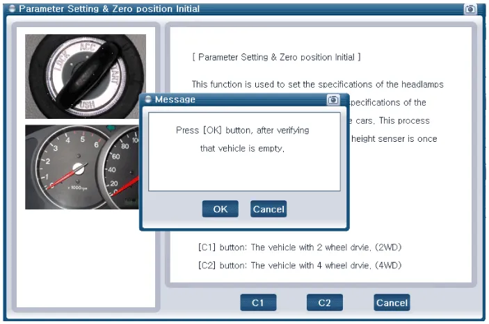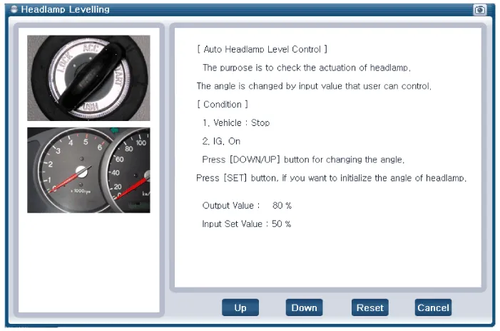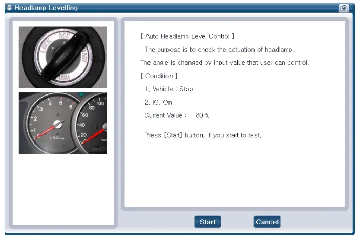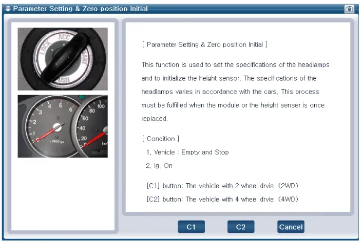 Select the vehicle model and "Auto Head Lamp Leveling System (AHLS)"