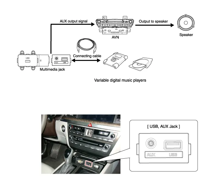 Removal 1. Disconnect the battery(-)terminals. 2. Remove the floor console assembly. (Refer to Body - "Floor Console Assembly") 3. Remove the multimedia jack tray (A) after loosening the screws from the floor console (B).