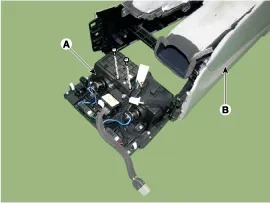 Removal 1. Disconnect the negative (-) battery terminal. 2. Remove the glove box housing (A). (Refer to Body - "Glove Box") 3. Remove the PGS unit (A) after loosening the nuts. Installation 1. Install the PGS unit. 2. Install the glove box housing.