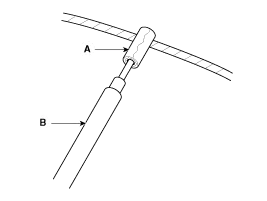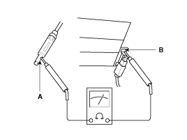 Check for continuity between the center pole (A) of antenna cable and terminal of glass antenna (B). There should be continuity.