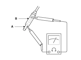 Check for continuity between the center pole (A) and outer pole (B) of antenna cable. There should be no continuity.