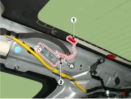 Remove the right rear quarter trim glass antenna, and then disconnect the power wiring from the amplifier. |