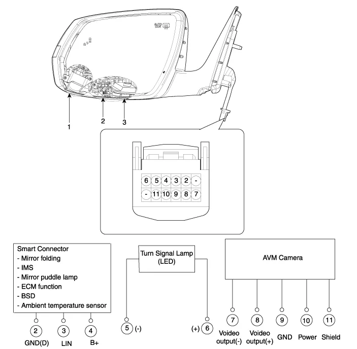 Hyundai Genesis (DH): Blind Spot Detection system / Blind Spot Detection Indicator Components and Components Location