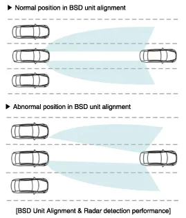 Rear bumper accident vehicles and vehicles that replaced BSD units must perform BSD unit alignment using GDS. |
