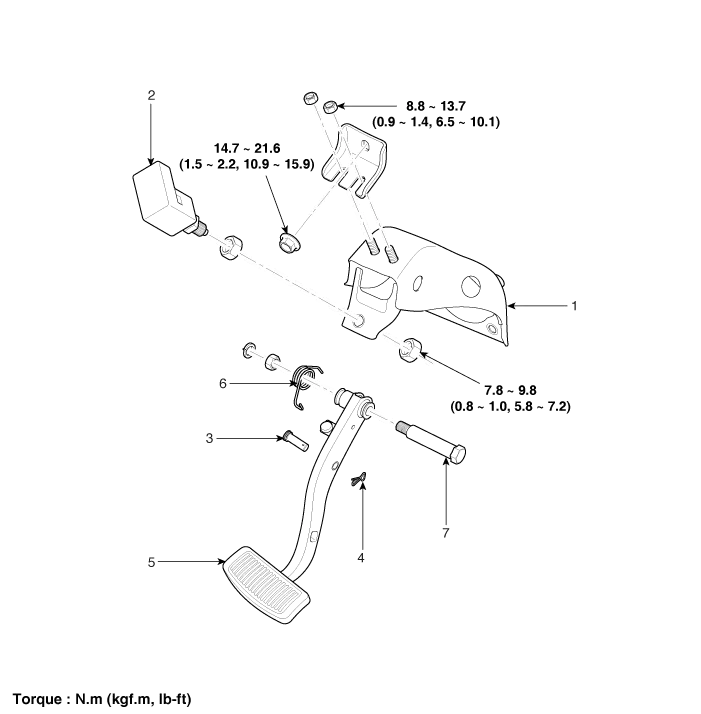 Hyundai Genesis (DH) 2013-2016 Service Manual / Brake System / Brake System / Brake Pedal Components and Components Location