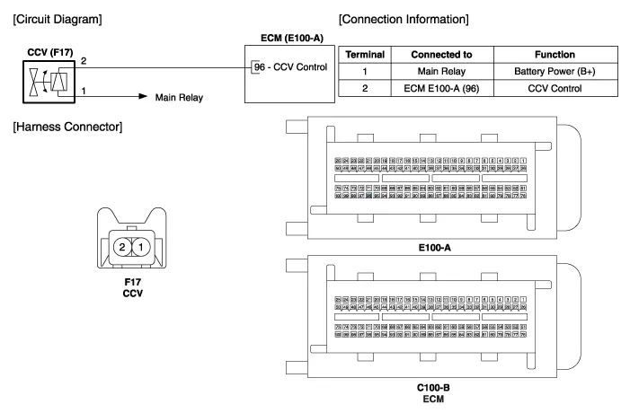 Inspection 1. Turn the ignition switch OFF. 2. Disconnect the CCV connector. 3. Measure resistance between the CCV terminal 1 and 2. 4.
