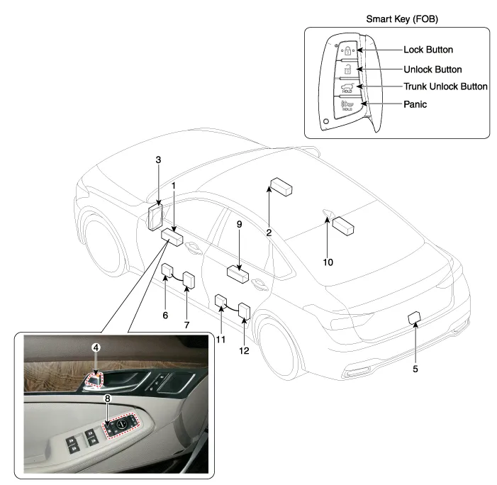 Hyundai Genesis (DH): Power Door Locks / Components and Components Location
