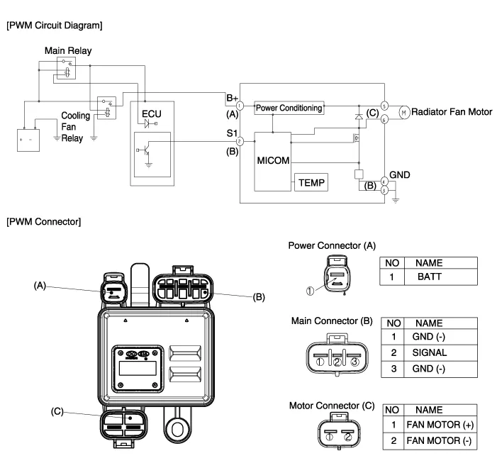 Removal And Installation Cooling fan 1. Disconnect the battery "-" terminal from the trunk room. 2. Remove the air cleaner assembly. (Refer to Intake and Exhaust System - "Air Cleaner") 3.