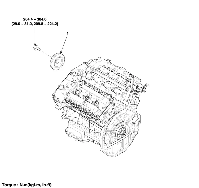 Hyundai Genesis (DH): Timing System / Crankshaft Damper Pulley Components and Components Location