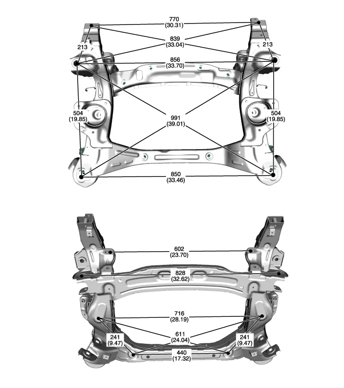 Hyundai Genesis (DH): Body Dimensions / Cross Member Body Repair