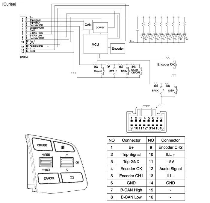 Trouble Symptom Charts Trouble Symptom 1 Trouble Symptom 2 Trouble symptomProbable causeRemedyThe set vehicle speed turns too high or low. "Surging" (repeated alternating acceleration and deceleration) occurs after settingMalfunction of the vehicle speed sensor circuitRepair the vehicle speed sensor system, or replace the partMalfunction of ECMCheck input and output signals at ECM Trouble Symptom 3 Trouble symptomProbable causeRemedyThe CC system is not canceled when the brake pedal is depressedDamaged or disconnected wiring of the brake pedal switchRepair the harness or replace the brake pedal switchMalfunction of the ECM signalsCheck input and output signals at ECM Trouble Symptom 4 Trouble symptomProbable causeRemedyThe CC system is not canceled when the shift lever moves to the "N" position (It is canceled, however, when the brake pedal is depressed)Damaged or disconnected wiring of inhibitor switch input circuitRepair the harness, or repair or replace the inhibitor switchImproper adjustment of inhibitor switchMalfunction of the ECM signalsCheck input and output signals at ECM Trouble Symptom 5 Trouble symptomProbable causeRemedyCannot decelerate (coast) by using the "SET/