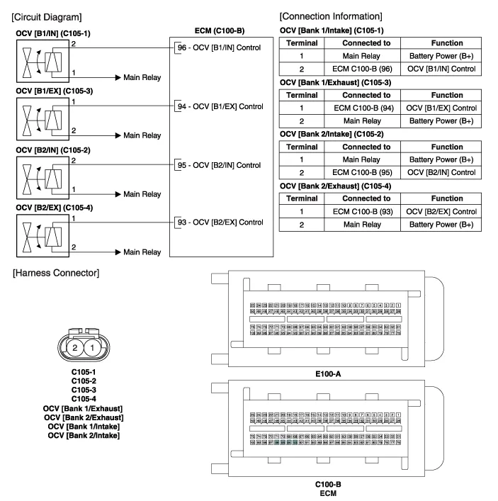 Inspection 1. Turn the ignition switch OFF. 2. Disconnect the OCV connector. 3. Measure resistance between the OCV terminals 1 and 2. 4.
