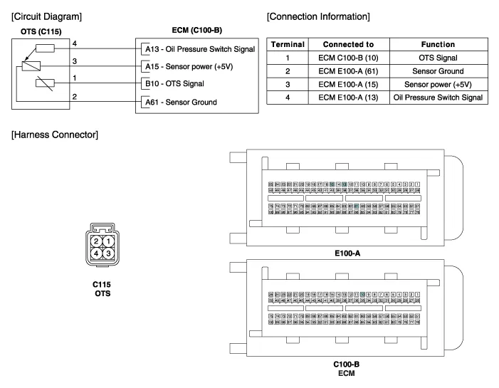 Inspection 1. Turn the ignition switch OFF. 2. Disconnect the OTS connector. 3. Remove the OTS (Refer to "Removal"). 4. After immersing the thermistor of the sensor into engine coolant, measure resistance between the OTS terminals 1 and 2.