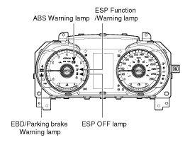 informs driver of the system failure through the BRAKE/ABS/ESC warning