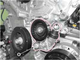 Remove the drive belt auto tensioner (A).