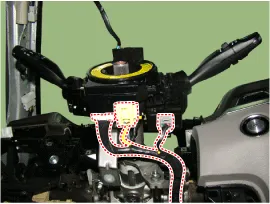 Connect the clock spring harness connector and horn harness connector to the clock spring. |