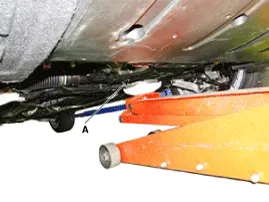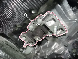 Remove the upper nut (A) of the RH engine mounting insulator, and then remove the mounting support bracket (B).