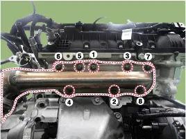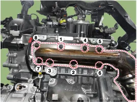 When installing the exhaust manifold, tighten the nuts in the sequence shown below. |