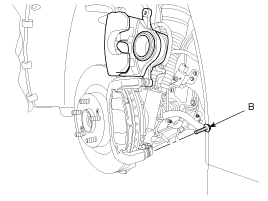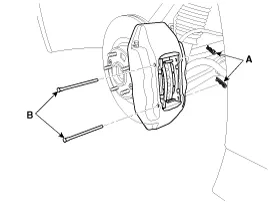 Loosen the guide rod bolt (B) and pivot the caliper up out of the way.