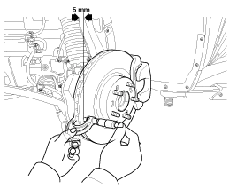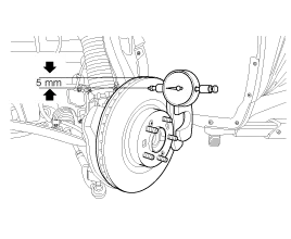 Place a dial gauge about 5mm (0.2 in.) from the outer circumference of the brake disc, and measure the runout of the disc.