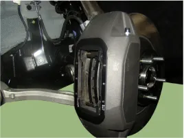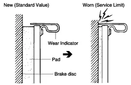 Check the pad wear. Measure the pad thickness and replace it, if it is less than the specified value.