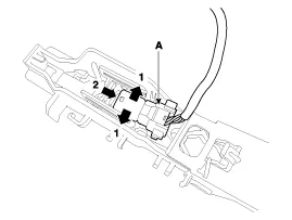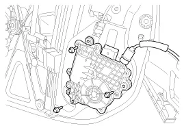 Disconnect the front door inside handle cage and then remove the cable by pushing it rearward. |