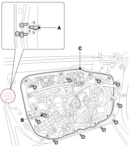mounting screws. After unscrewing the lower channel screw (B) as loosely