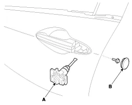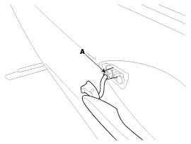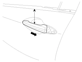 Remove the front door outside handle (A) by sliding it forward.