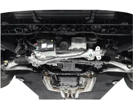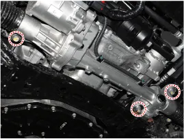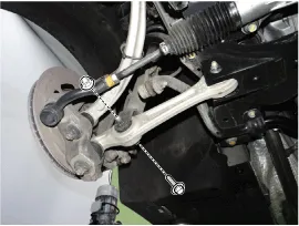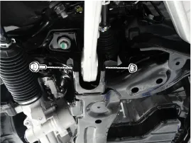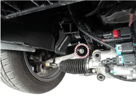 Loosen the steering gear box mounting bolts and then pull the steering gear box in direction of down.