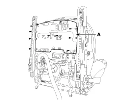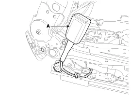 After loosening the mounting bolt, remove the front seat belt buckle (A).