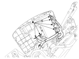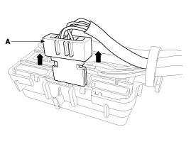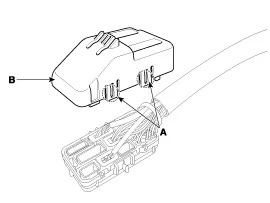 Remove the two fixing clips using a flat-tip screwdriver, and then remove the front seat integration connector cover (B).