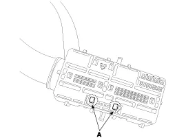 To remove the front seat belt buckle connector, use a sharp-pointed tool (A) like the picture below.