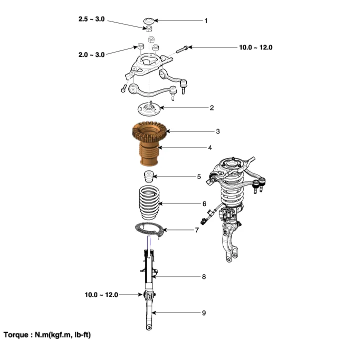 Hyundai Genesis (DH): Front Suspension System / Front Strut Assembly Components and Components Location
