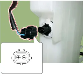 Removal Head Lamp Washer Motor - When servicing the washer pump, be careful not to damage the washer pump seal. - Do not operate the washer pump before filling the washer reservoir.