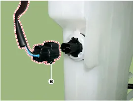 Disconnect the washer motor connector (A) and level sensor connector (B).