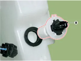 Remove the reservoir washer inlet (A) after loosening the mounting bolt.
