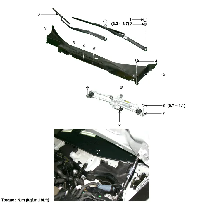 Hyundai Genesis (DH): Windshield Wiper/Washer / Front Wiper Motor Components and Components Location