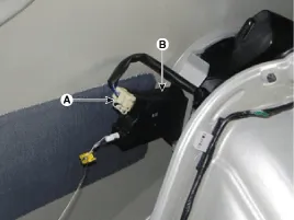 Remove the fuel filler door release actuator (B) after disconnecting the fuel filler door release actuator connector (A).