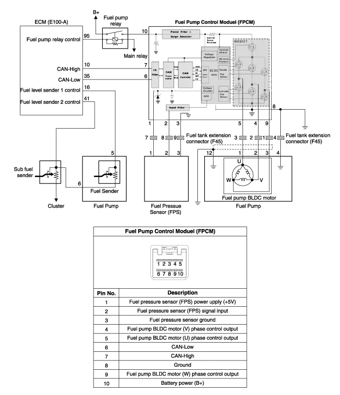 Inspection 1. Connect the GDS on the Data Link Connector (DLC). 2. If there is DTC on the GDS, replace the FPCM. 3. Check the output voltage of fuel pressure sensor (FPS).