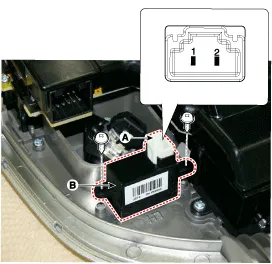 Remove the handsfree mic (B) after disconnecting the handsfree mic connector (A).